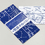 日本(北緯35度)から見える星座を正確に描写した手ぬぐい。紺地白抜きと白地紺色の2種類。価格648円。