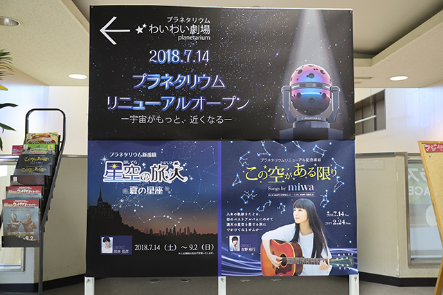 リニューアルに合わせ、シンガーソングライターのmiwaさんの曲をふんだんに使った新作番組「この空がある限り」と季節番組「星空の旅人 夏の星座」が封切られた。どちらも人気声優をナビゲーターに迎え、声優目当てに富士川楽座を訪れるファンも後を絶たないという。