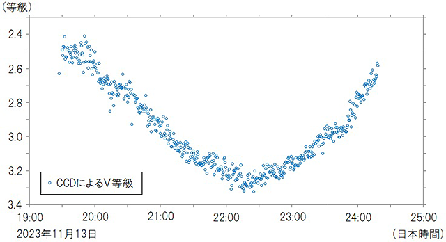 食変光星は長時間の観測が必要ですが、一晩観測すると思った以上にきれいな光度曲線を描くことができます。また極小時刻を何度も観測することで連星系の様々な変化をとらえられ、天文学的にも価値の高いものとなります。この機会にぜひ、食変光星の観測にチャレンジしてみてはいかがでしょうか。