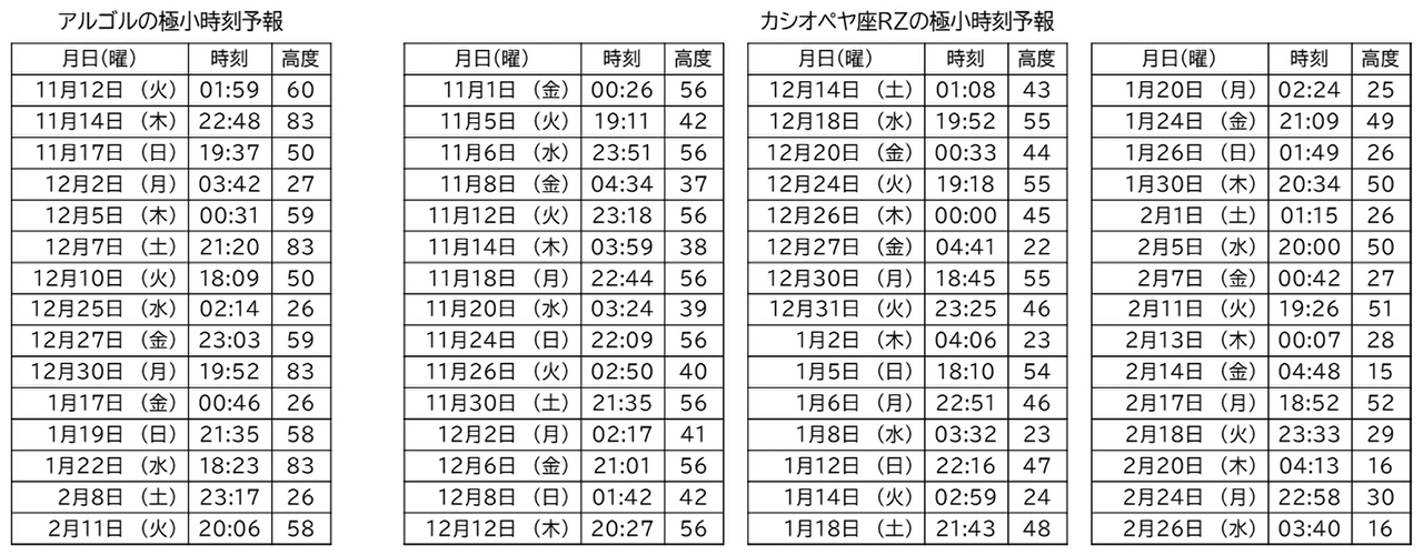 - 2025/10/20 秋の食変光星、アルゴルとカシオペヤ座RZを観測しよう