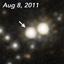 通常の超新星よりも数十倍明るく、増光ペースが極めて速い突発天体が発生直後に見つかった。正体としては特殊な超新星やブラックホールに引きちぎられた星などが考えられる。