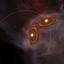 ペアの原始星それぞれから噴き出す不揃いな分子流が、アルマ望遠鏡による観測で検出された。原始星円盤の回転軸も大きく傾いていることが示唆され、連星系形成のメカニズムを解明する手がかりの一つとなる。