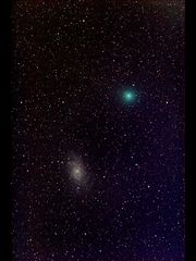 写真では緑色の頭部がとても印象深い彗星です。