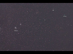 (1枚目)2008年の写し初め、タットル彗星初見参です。かなり拡散しているようで、望遠鏡眼視ではかすかに存在が分かる程度です。ややピンぼけです。