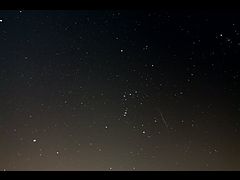 岡山県南部地方は快晴に恵まれたものの、半月より少し大きい月の影響で30秒ほどしか露光できませんでした。200枚ほど撮った中の比較的大きな流星が写ったものです。