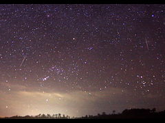 10秒のシャッター速度の間に上下、大小の流星が同時に写っていました。