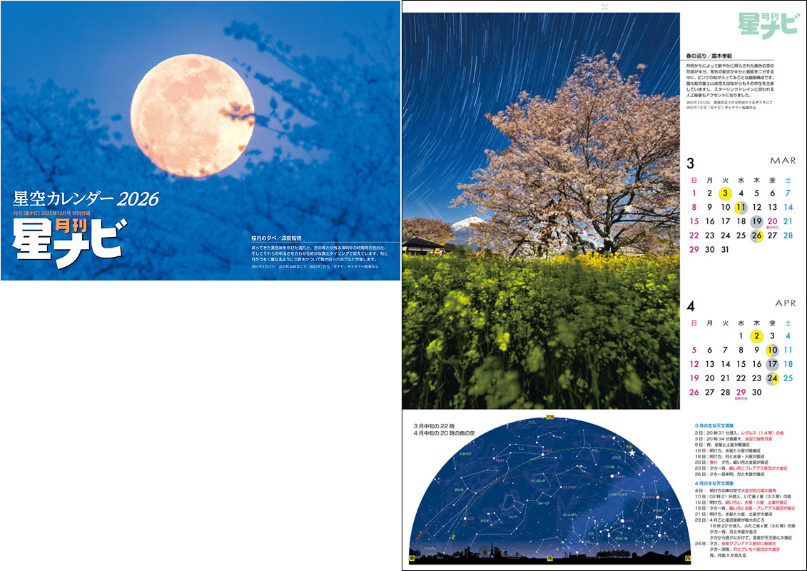 過去1年間の「星ナビギャラリー」掲載作の中から季節感のある作品をピックアップしたカレンダー。美しい星景写真を楽しみながら、その月にある天文現象をまとめて知ることができる、天文ファン必携の一冊。