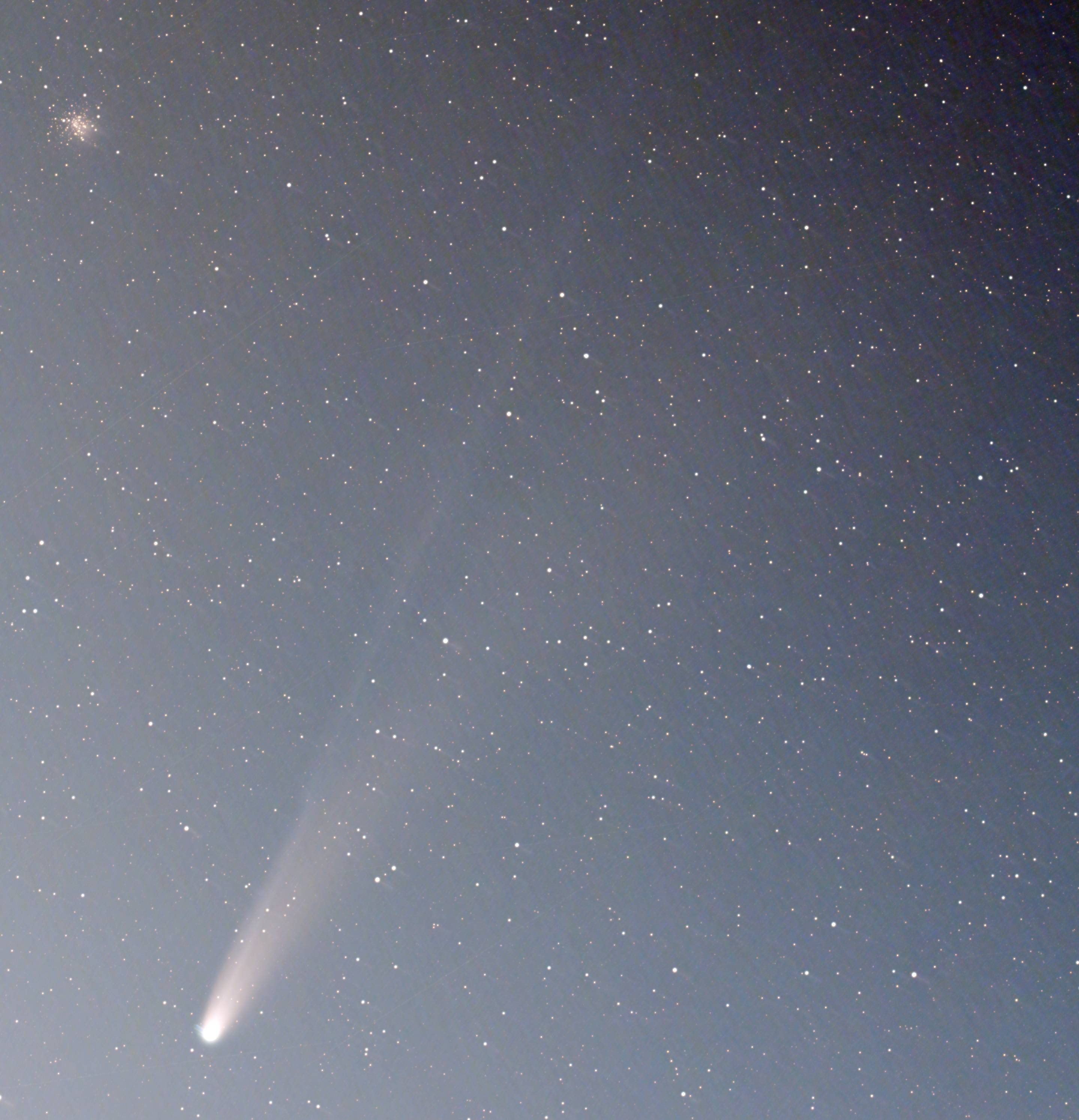 11/3投稿分の再処理です。DeepSkyStackerで、「Stars+Comet Stacking」を試みてみました。 これまで、この処理は動作しないと勘違いしていましたが、順番に処理すれば良いことがわかりました。 1.Standard Stacking → 2.Comet Stacking(最初と最後のLightFrameで彗星核を指定) → 3.Stars+Comet Stacking PixelInsightのStarXTerminatorよりも手間がかからないでお手軽です。彗星のコマを拡大すると、消しきれない跡が残っていますが、 フリーソフトでここまでできるなら満足ですね。