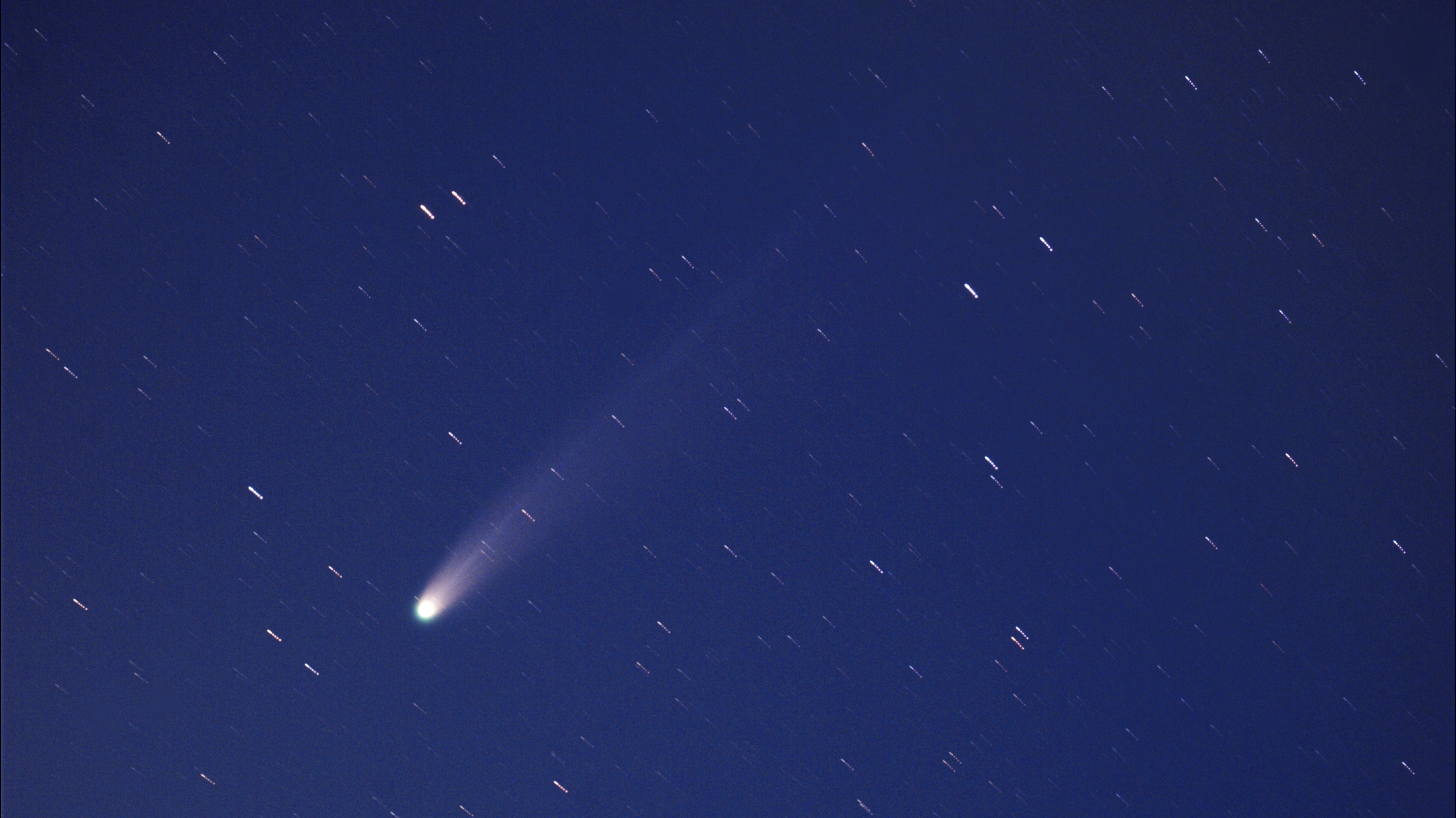 ➀ ステライメージ8:RAW現像、FITS保存、コンポジット (彗星核基準・加算平均σクリッピング)、レベル調整、画像調整パネル(中間調他)、カブリ補正、Lab色彩調整(赤(R)0.5緑(G)1.5)、トーンカーブ調整、FITS→JPEG保存 ② Microsoft Office Picture Manager:コントラスト及び中間トーン調整、トリミング (16対9) ③ Windows フォト:リサイズ