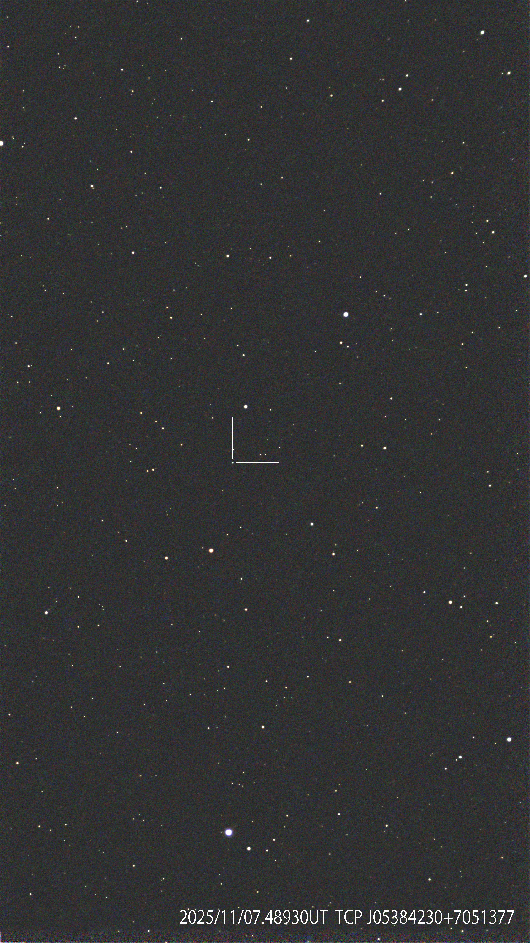 矮新星候補の突発天体です。 SI10の光度測定で13.280等でした。 Seestar S50はバージョンが2.6.4になってから導入制度が凄く良くなりました。