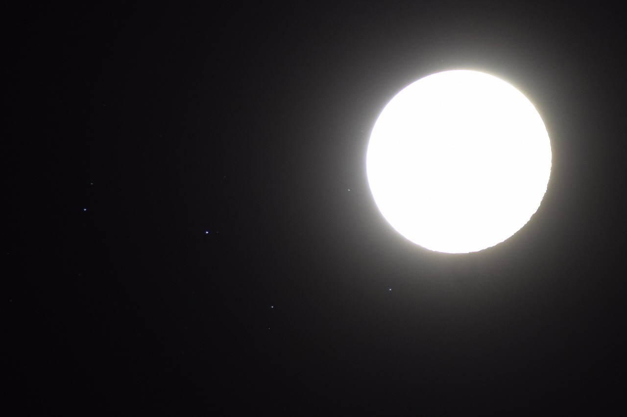 2025年最大の満月から1日後の明るい月が、すばるの星々を次々と隠す「すばる食」を撮影しました。月が明るすぎて露出時間を決めるが難しかったです。