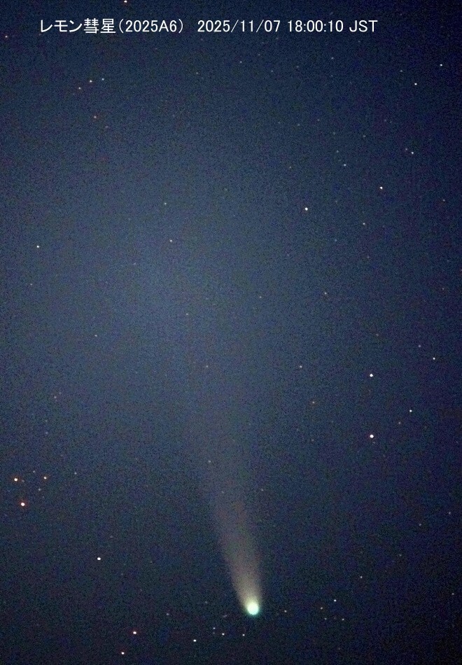 近日点通過前のレモン彗星を 追って見ました。 山中湖にて気温8度,下り坂の 天気で透明度は今一つ、低空に沿って 薄い雲の中、高度14度付近で 10X70の双眼鏡で尾も微かに見え 富士の稜線に隠れて行く。