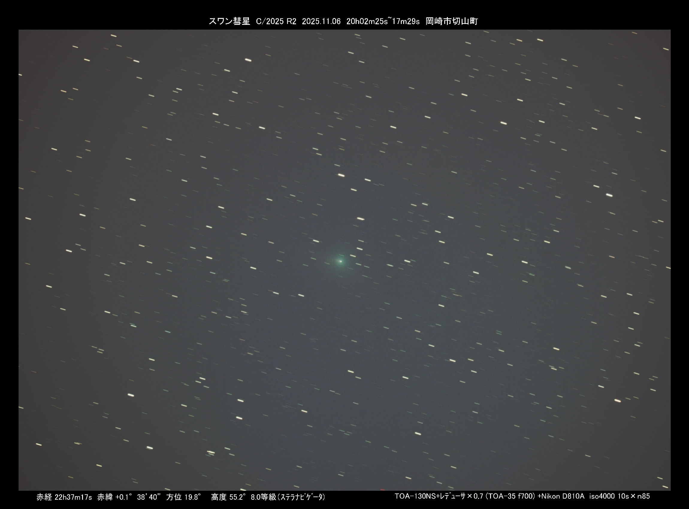 SWAN彗星(C/2025 R2) 詳細は画像内に記載。