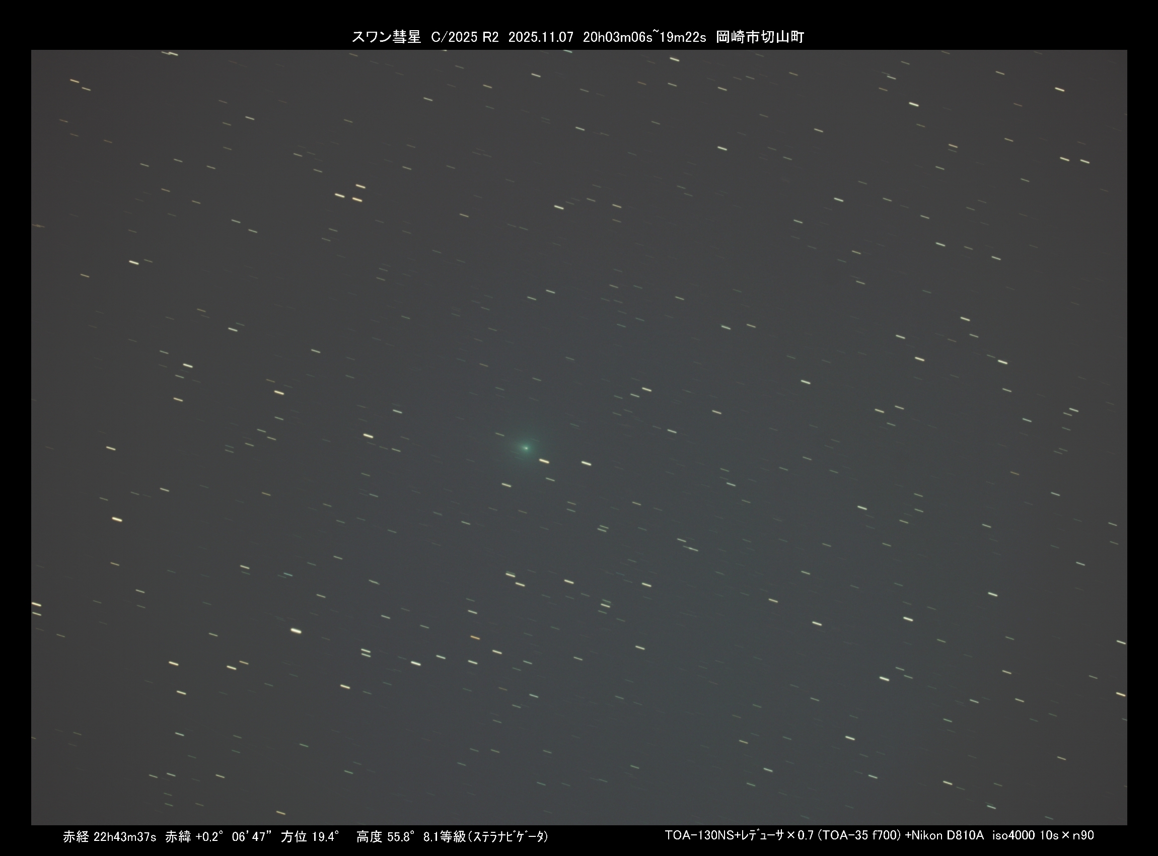 SWAN彗星(C/2025 R2) 詳細は画像内に記載。