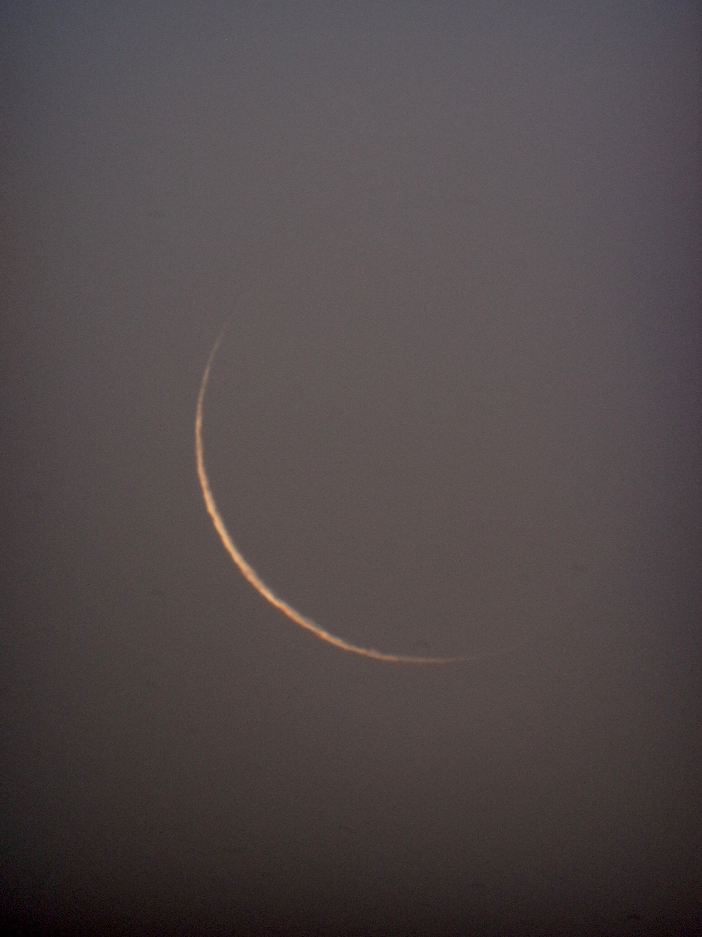 月齢28.6(正午)の月です。金星の右横に並びました。 撮影時刻では月齢28.34だと思います。