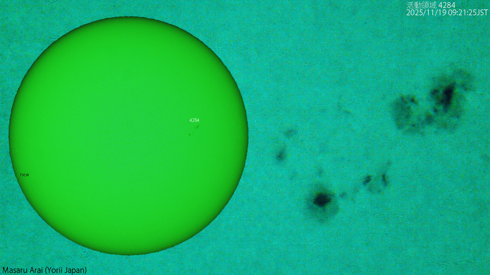 SE120L+DMC-GH1よる、活動領域 4284( Dai/Dsi ) です。 NICT情報:活動領域4284と太陽面東端付近の領域でCクラスフレアが数回発生し、最大のものは、活動領域4284で18日12時25分jstに発生したC2.2/SFフレアでした。