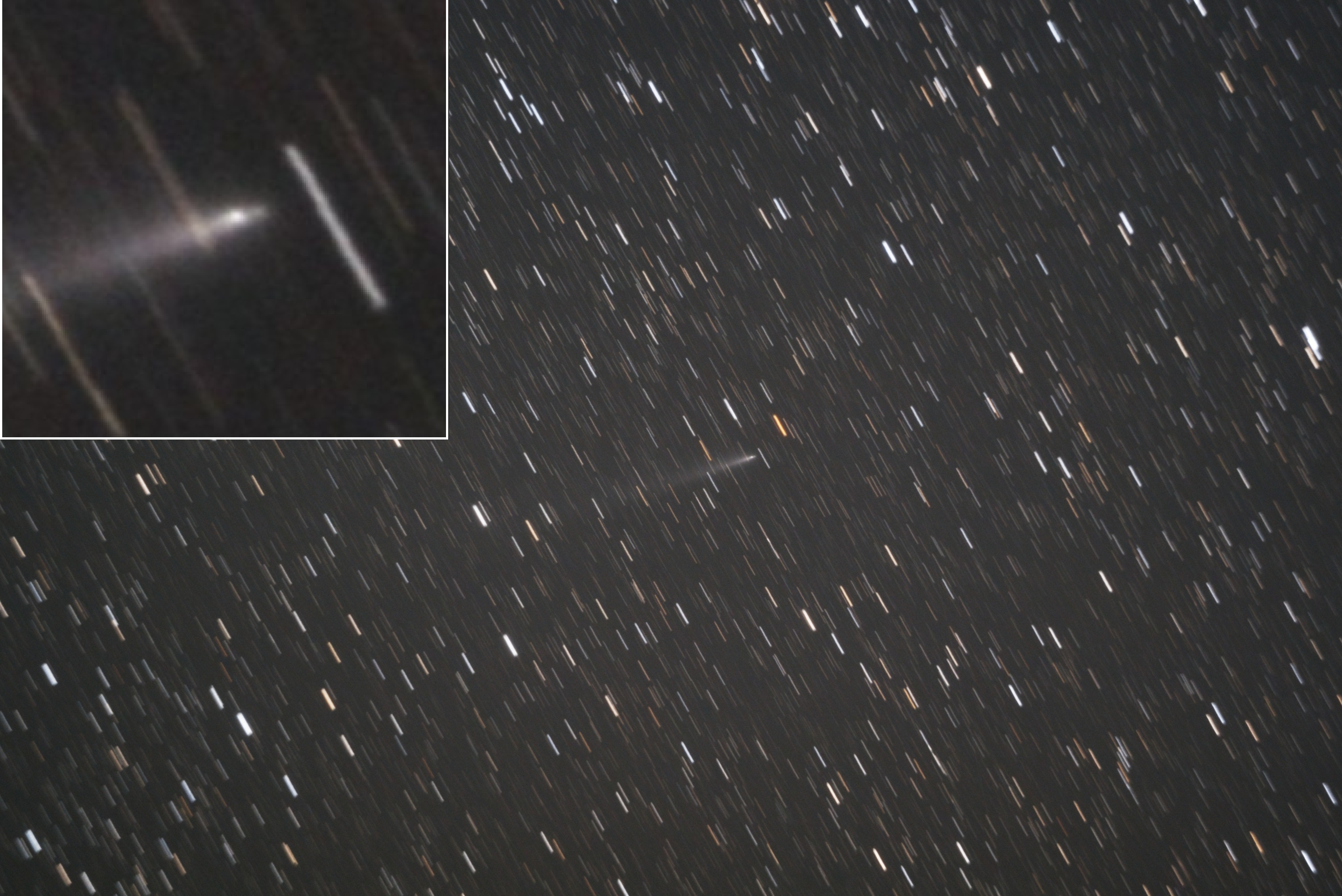 月明かりの影響が無くなったので尾がよくわかります。分裂した核が主核よりも明るくなっているのでしょうか。