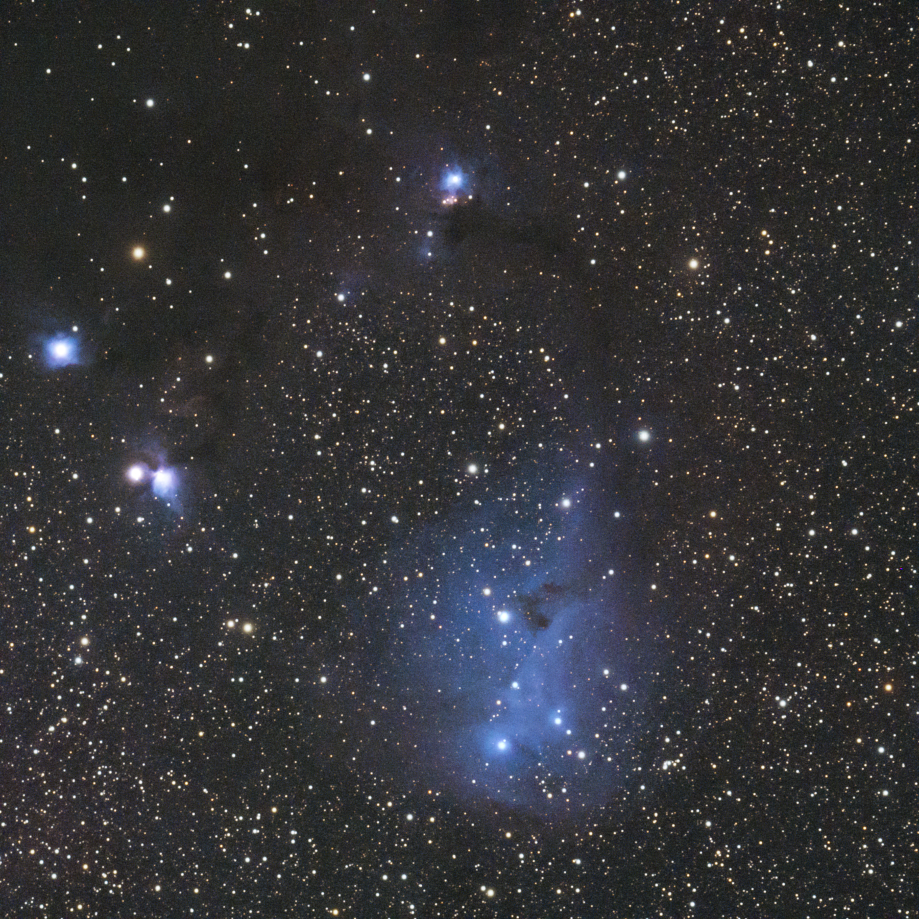 青い色の綺麗な反射星雲として知られていますが、この青が中々思うように描出できません。今回はある程度満足できました。少しセンターを外していますが、これはJ2000のRA,Dec の値を入力し、Center Hereしたためで、ステラリウムの「瞬時」の値にすると、ほぼ解決することが今回分かりました。お試しあれ!