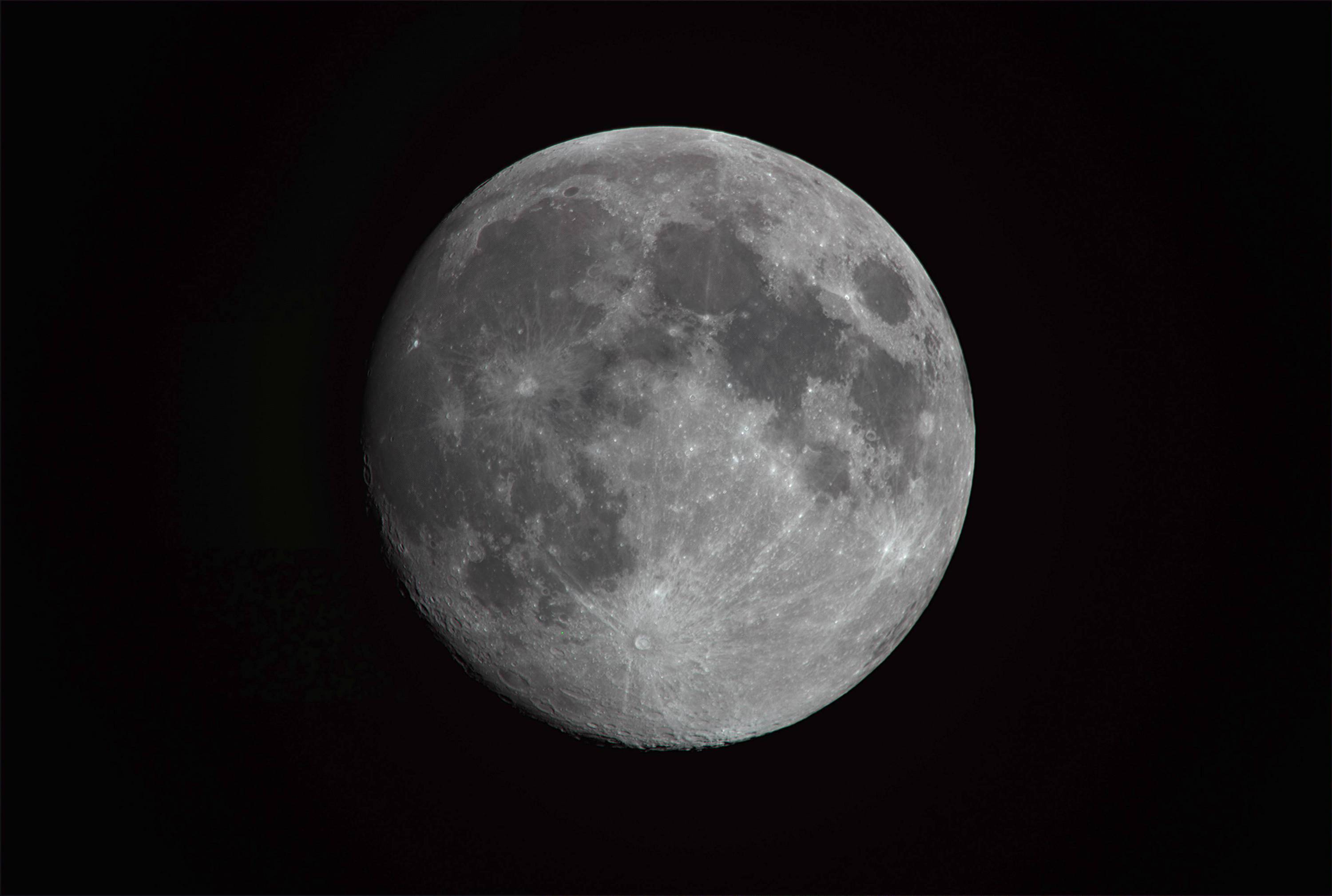 月齢13.3の月を1200mmで撮影しました。北関東(つくば)は連日の快晴です。月降水量が記録的に少ないとのこと。孫が泊まりに来たので記念に撮影しました。