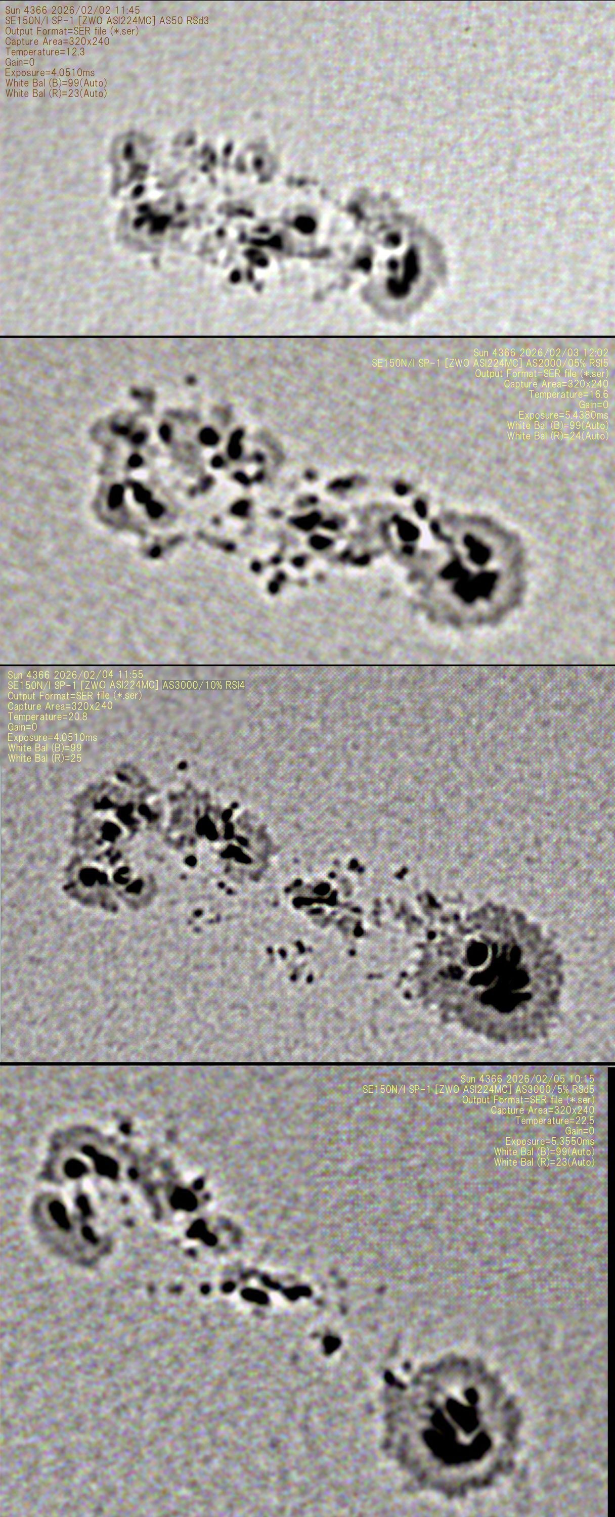 Hiroji1716太陽黒点(活動領域4366)の変化 2026/02/02-05