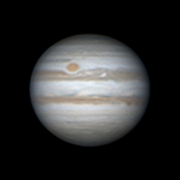 大赤斑が子午線を通過した木星の姿です。気流は相変わらず真冬のさなかですが、SEBの中で大赤斑を追う白色部は眼視でもよく見えていました。