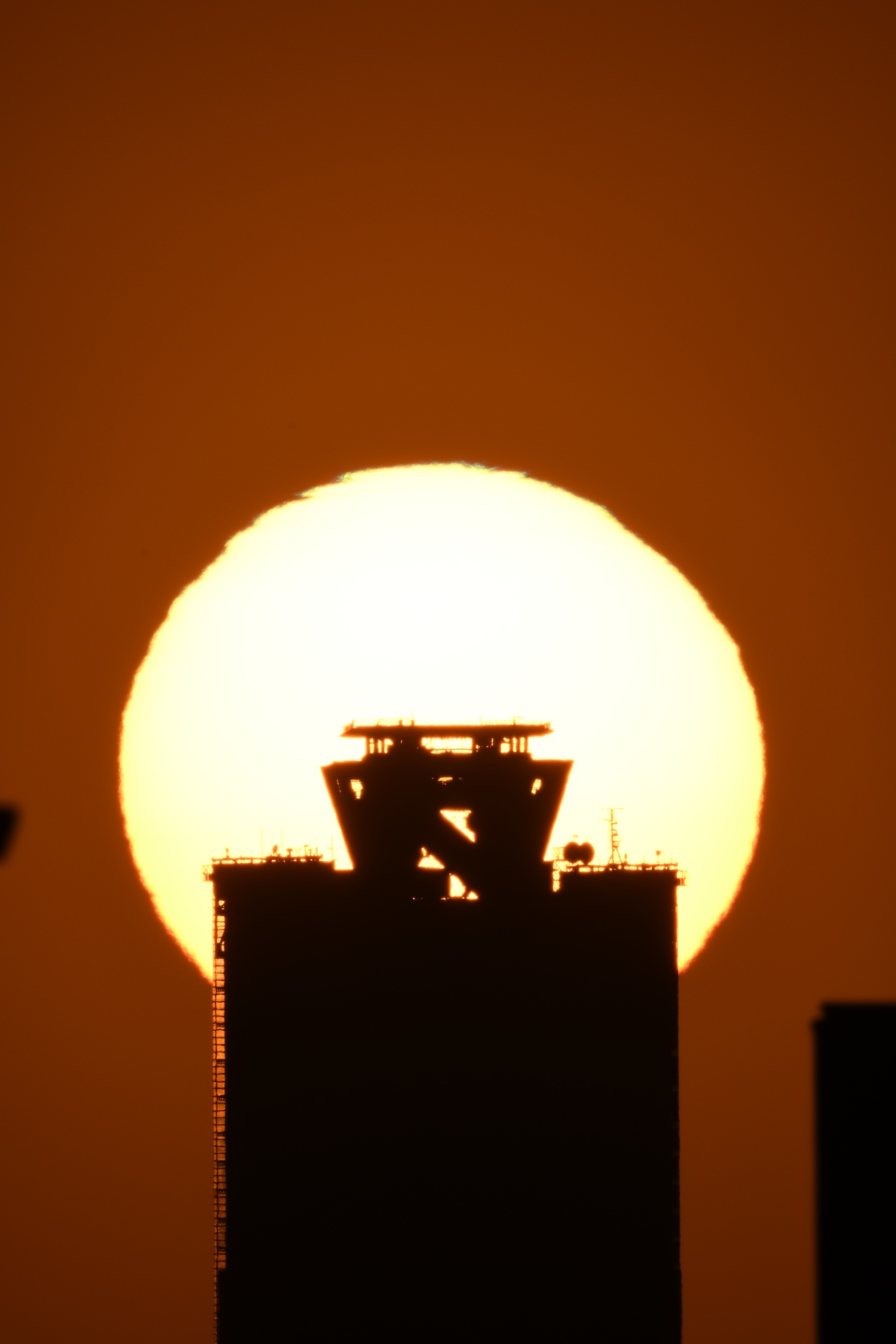府咲洲庁舎ビルへの日没 (2026/04/07)