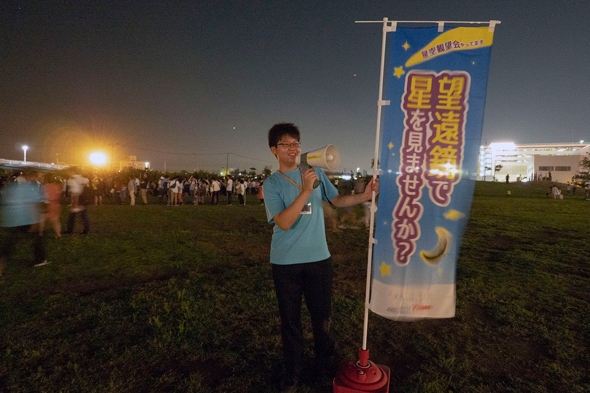 2日目は少し雲が多めだったものの両日とも晴天に恵まれ、屋外会場に並べられた50台以上の望遠鏡で、オレンジに輝く火星のほか、宵の空に勢揃いした金星、木星、土星が次々に導入され、集まったファミリーや学生たちが興奮気味に見入っていた。屋内イベントでは空の探検家・武田康男さんや、国立天文台副台長の渡部潤一さんの講演会などが開催され、こちらも多くの参加者が熱心に聞き入っていた。