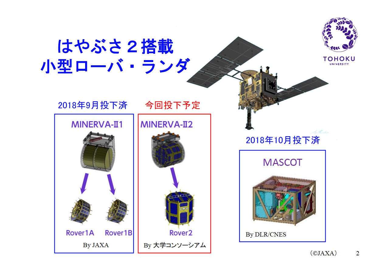 この運用のために「はやぶさ2」は9月28日からリュウグウへの降下を始めており、予定では10月3日の0~2時(日本時間)に高度1kmで「MINERVA-II2」のローバーを分離することになっている。