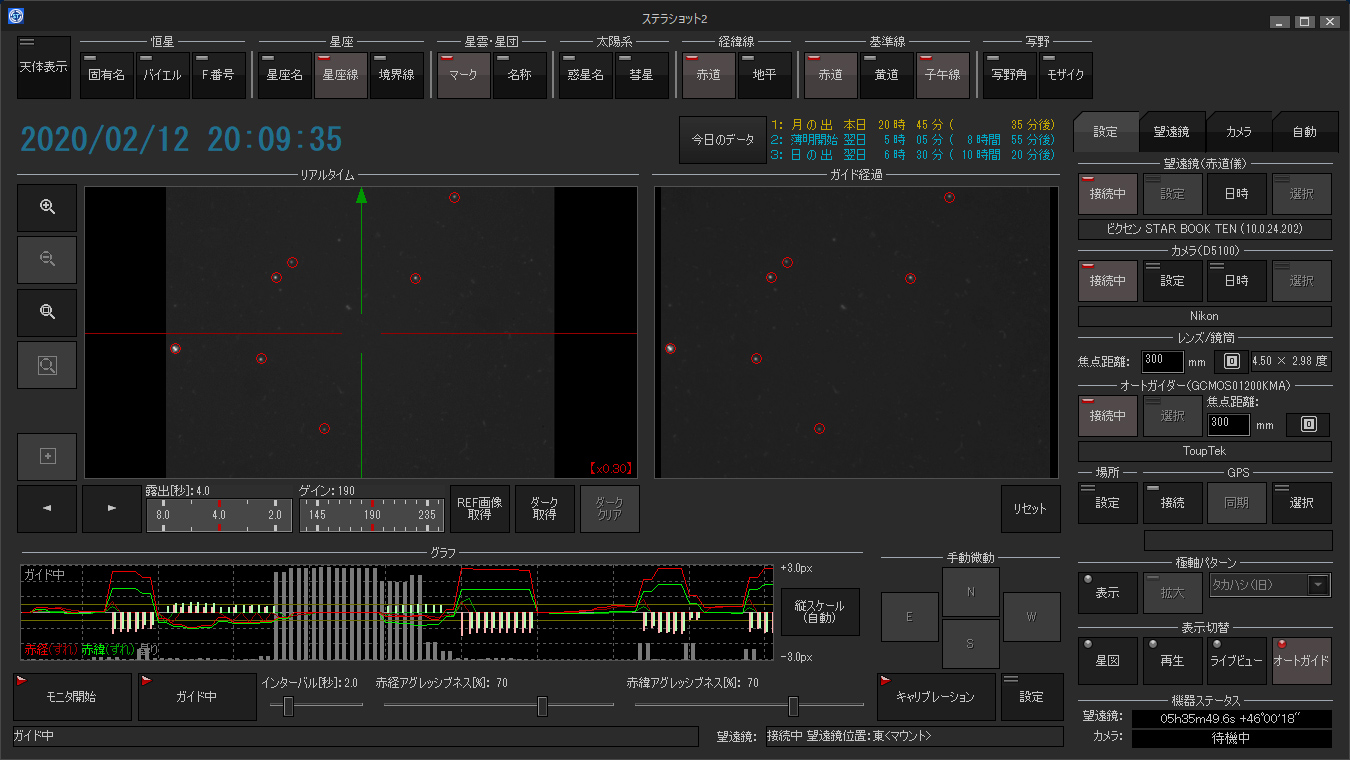 ガイド星をモニターしながら雲の通過を検知し、自動で撮影を中断・再開。雲の合間の撮影を効率化します。