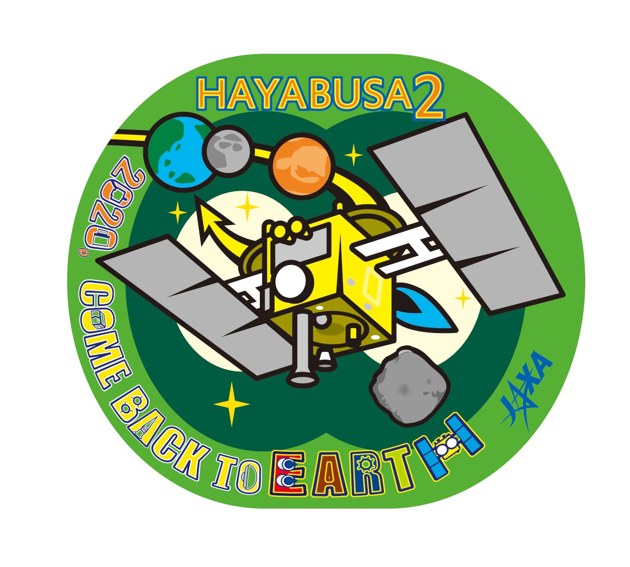 「はやぶさ2」プロジェクトの最新のミッションロゴマーク。帰還フェーズに入った昨年11月にデザインがリニューアルされた。「2020, COME BACK TO EARTH」の文字にもミッションにちなんだ様々な小ネタが隠されている(提供:ISAS/JAXA)