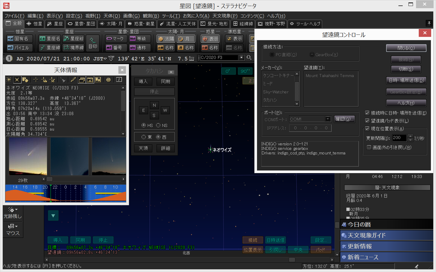「ステラナビゲータ11」11.0eアップデータ公開、望遠鏡の無線制御対応、不具合修正など