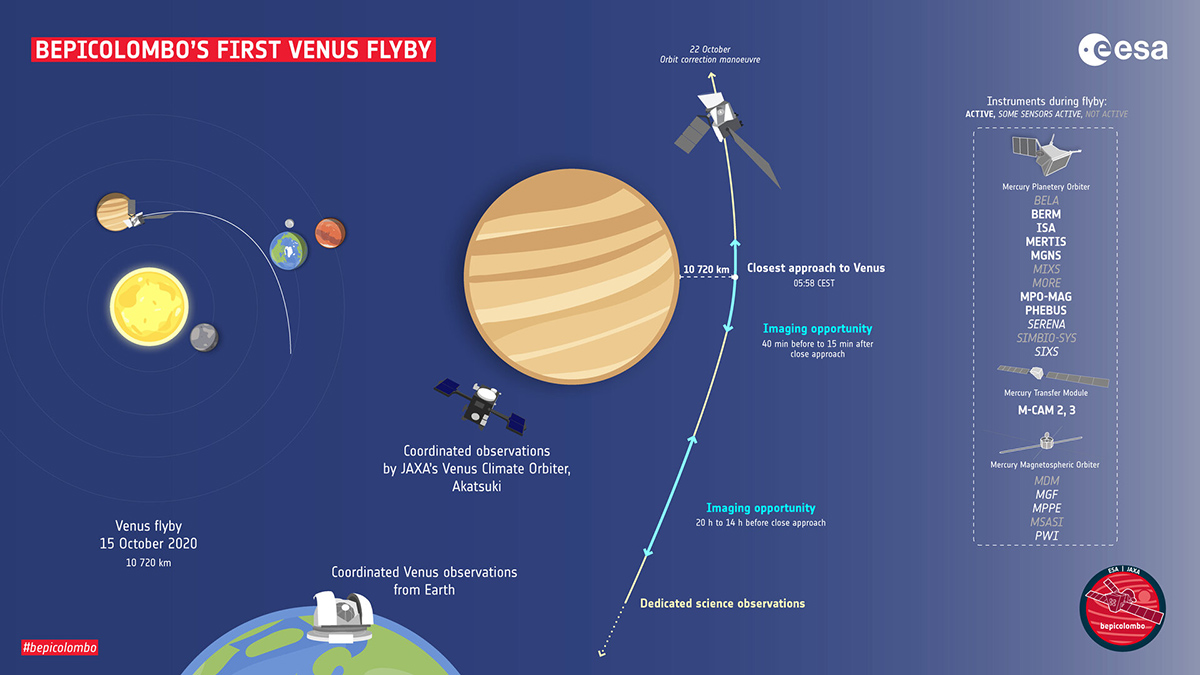10月15日の金星フライバイでは、探査機は金星の地表まで約1万720kmの距離にまで接近した。フライバイを無事成功させるため、遠く離れた地球の独・ダルムシュタットにあるESAの管制センターでは3か月前から準備が行われていた。だがその作業の大半もまた、新型コロナウイルス対策でリモートワークによって行われたという。