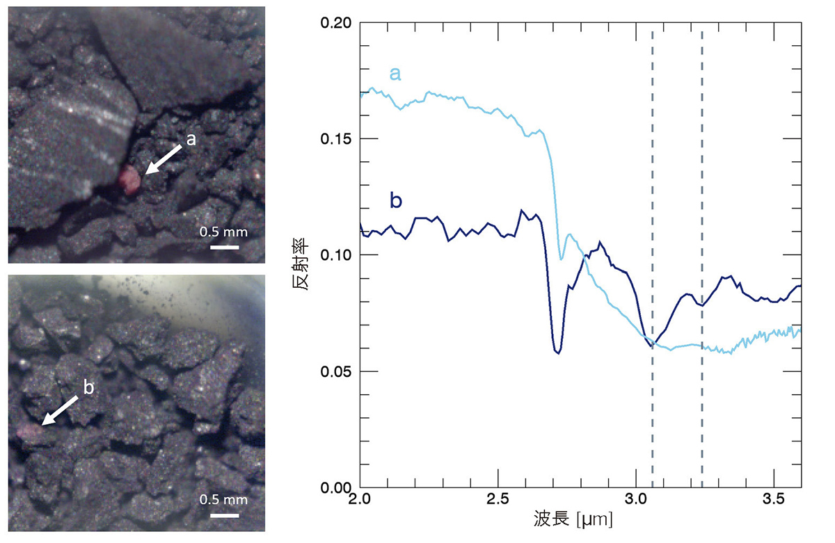 また、フーリエ変換赤外分光装置(FT-IR)で試料の赤外線反射スペクトルを調べたところ、試料の反射率は2%ほどで、炭素質隕石の中で最も暗いCIコンドライトよりもさらに暗かった。C型小惑星と炭素質隕石の共通点と違いを、実際の天体の試料で確認できたのはきわめて重要な成果だ。