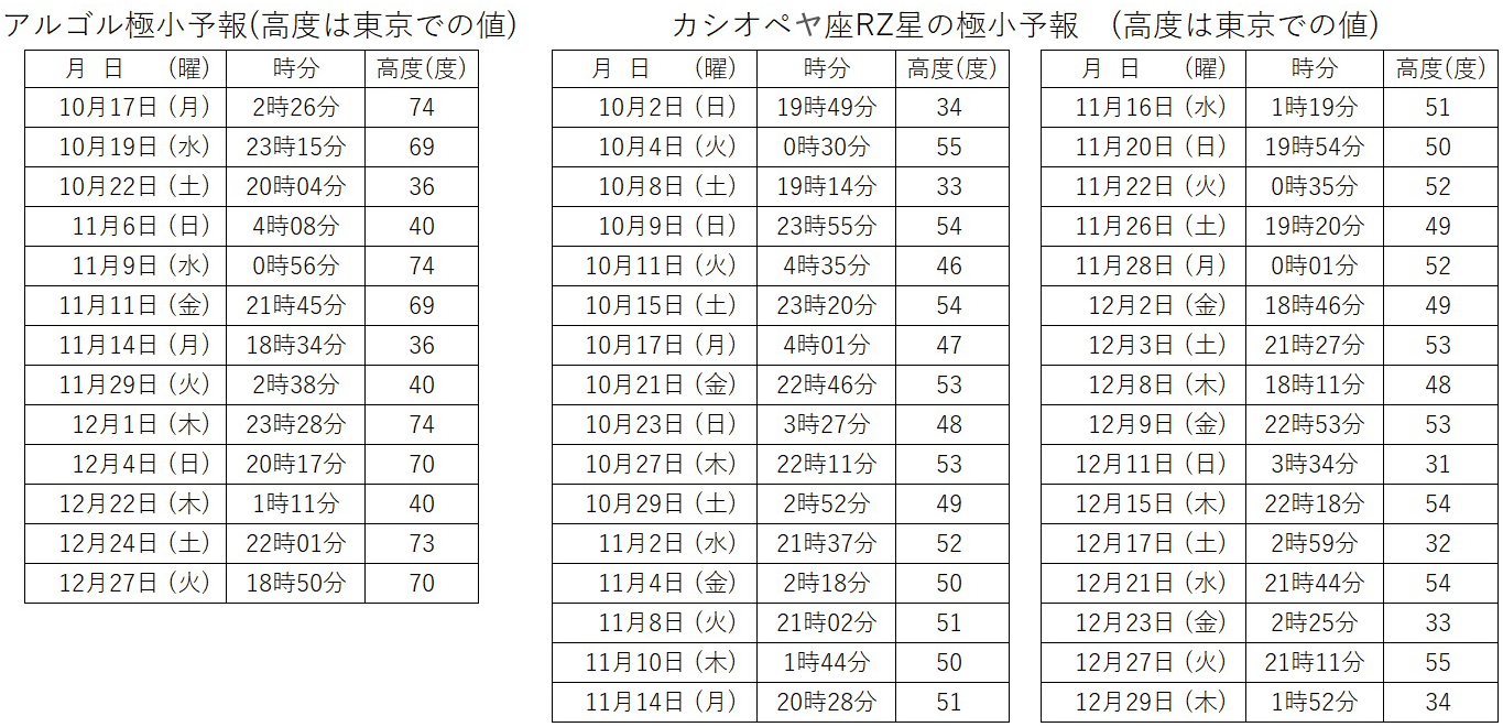 - 2025/10/20 秋の食変光星、アルゴルとカシオペヤ座RZを観測しよう