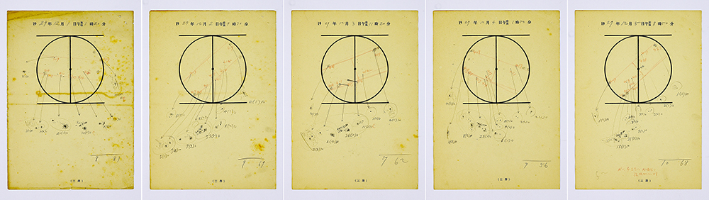 三澤さんによる1929年12月1日~5日の太陽黒点スケッチ。画像クリックで拡大表示(出典:Clette et al. (2023) CC-BY)