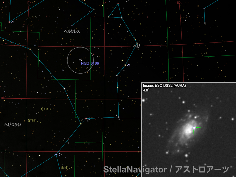 埼玉県の大越英比古さんが1月16日20時26分ごろ(世界時。日本時では17日5時26分ごろ)、ヘルクレス座の銀河NGC 6106に16.2等の新天体を発見した。