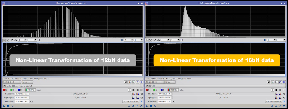 (左)12bitADCのデータ密度、(右)16bitADCのデータ密度。画像クリックで拡大表示