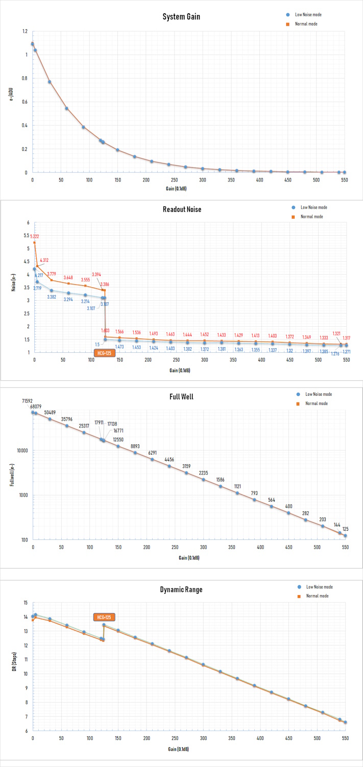 - Player Oneのカメラには独自のHCGモードを装備。HCGモードは、ハイゲイン設定時に読み出しノイズを大幅に低減し、低ゲインと同じ高ダイナミックレンジを維持できる。