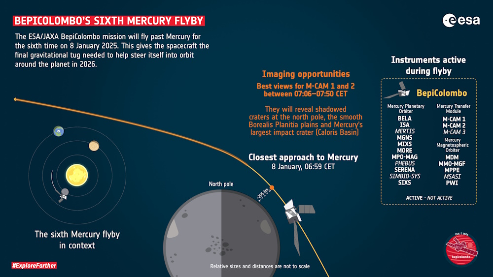 「ベピコロンボ」の6回目水星スイングバイのインフォグラフィック。画像クリックで表示拡大(提供:ESA)