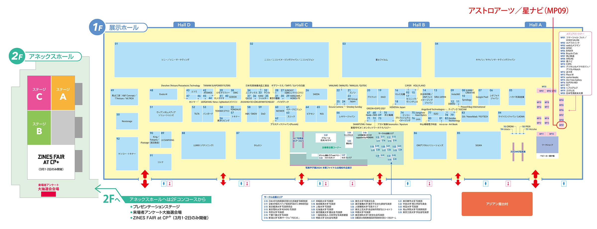 CP+2025会場マップ。アストロアーツ/星ナビブースは会場入り口から右側。画像クリックで表示拡大