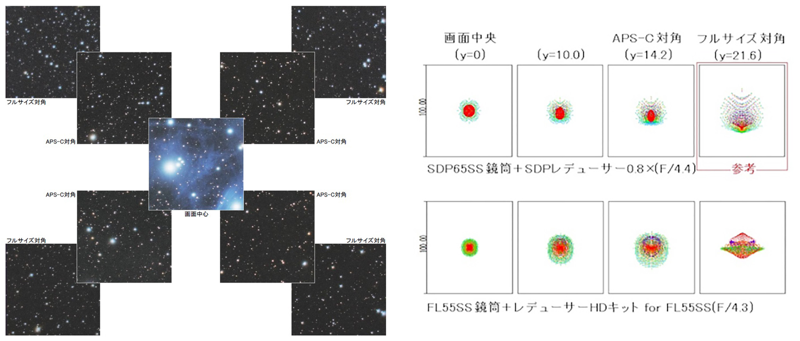 - 周辺星像の崩れを高レベルで補正し、イメージサークル⌀44mmの写野全面にわたり、美しい星像が結ばれる。