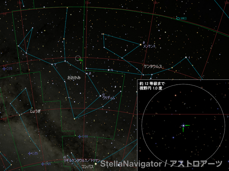 超新星サーベイを行っているASAS-SN(All-Sky Automated Survey for Supernovae)のグループによると、6月12日20時52分(世界時。日本時では13日5時52分)におおかみ座の西部に8.7等(G等級)の新天体が出現しました。ASAS-SNによる11日17時45分(世界時。日本時では12日2時45分)の観測ではこの位置には16.9等以上の天体は見られず、12日に増光を起こしたものと思われます。