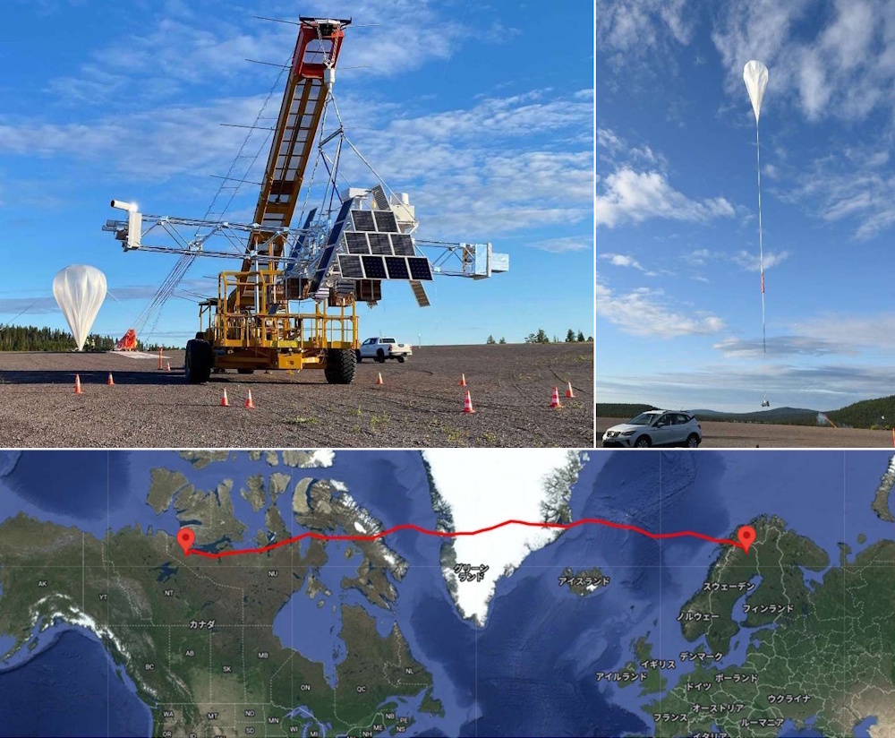 (上)気球望遠鏡「XL-Calibur」。(下)スウェーデンからカナダまでの飛行経路。画像クリックで表示拡大(提供:プレスリリース)