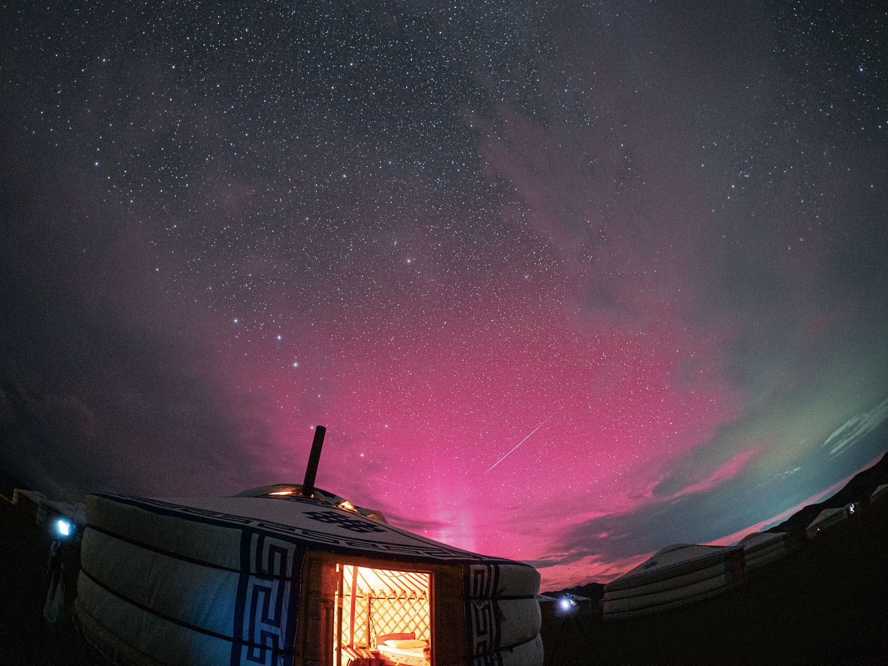 太陽活動の極大に伴い、2024年8月のツアーでは低緯度オーロラとペルセウス座流星群を同時に見るというスペシャルな体験ができました(星ナビ2024年10月号に関連記事、試し読みできます)。モンゴルは北海道より緯度が高く、低緯度オーロラも見やすいのです。2026年も太陽活動は活発な状態が続いており、滞在中に低緯度オーロラが見られる可能性もあります。