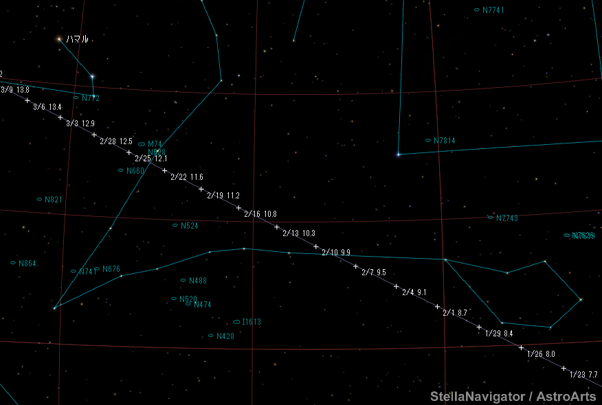 フィンレー彗星は現在うお座に位置しており、夕方から宵のころ西の空に見える。話題となっているラヴジョイ彗星(C/2014 Q2)ほど見やすいわけではないが、意欲のある方は観察や撮影に挑戦してみよう。2月10日前後には天王星と接近する。