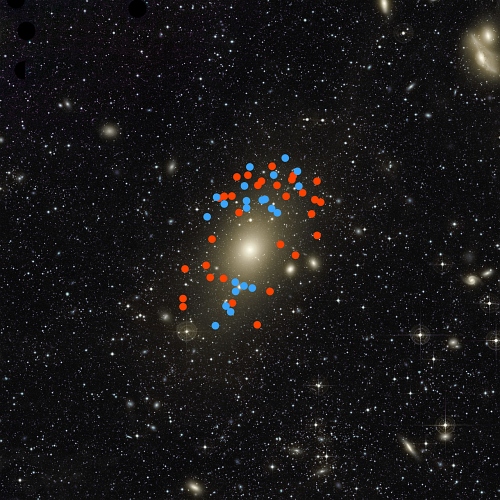 約5000万光年彼方に広がるおとめ座銀河団の中心に位置するM87は巨大楕円銀河で、その質量はなんと太陽の1兆倍以上もある。M87のような大型の銀河はより小さい銀河を飲み込んで大きくなっていくと考えられているが、こうしたプロセスが実際に起こったという証拠を発見するのは容易ではない。小さい銀河の星々が大きな銀河の星々と混ざり合ってしまうからだ。