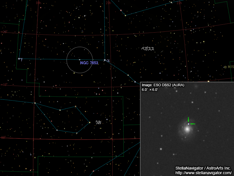 その5日後の12.4677日(日本時では12日20時15分ごろ)、板垣さんはペガスス座の銀河NGC 7653にも17.3等の超新星候補天体を発見した。天体の位置は以下のとおり。