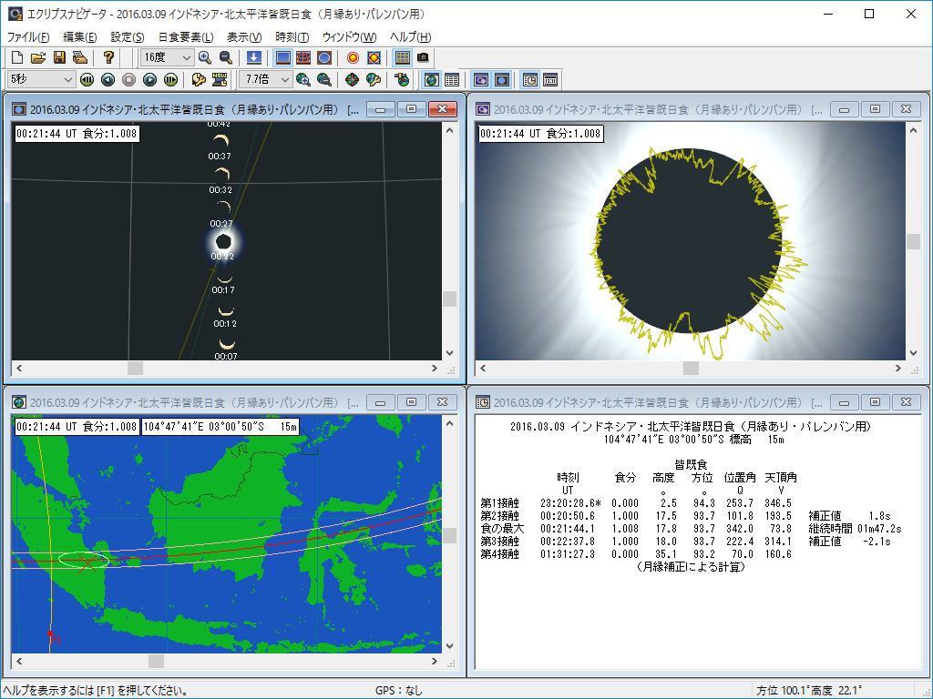 エクリプスナビゲータ2.5用 3月9日インドネシア皆既の月縁あり日食要素を公開