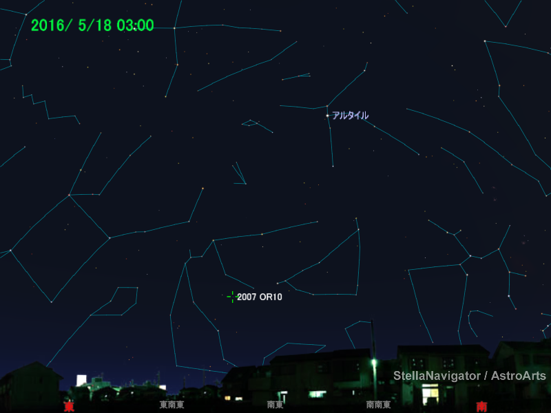 2016年5月18日の2007 OR10の位置。みずがめ座にあり、明るさは約22等。クリックで星図拡大(ステラナビゲータで星図作成、以下同)