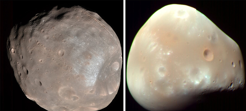 フォボス(左)とダイモス(右)。クリックで拡大(提供:NASA/JPL-Caltech/University of Arizona)